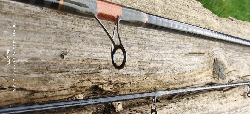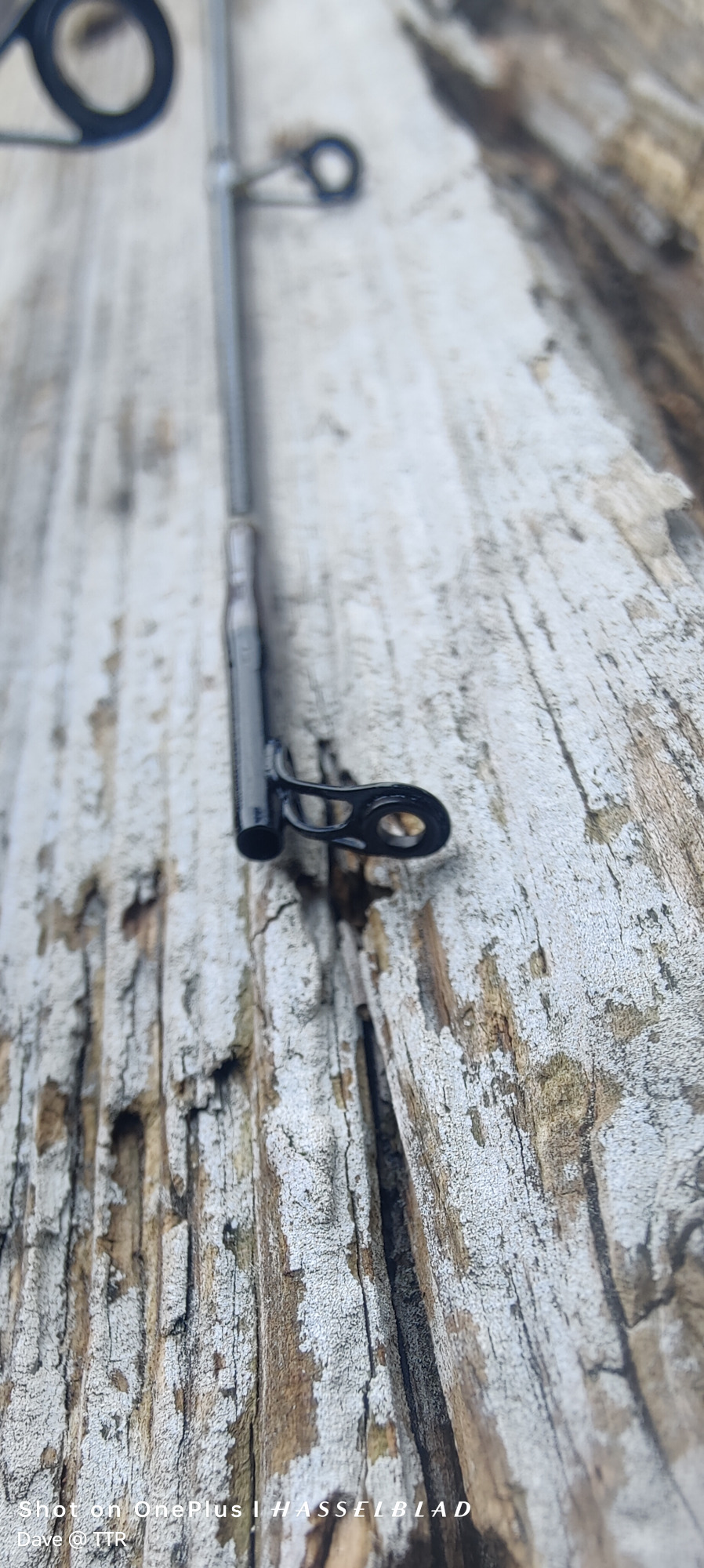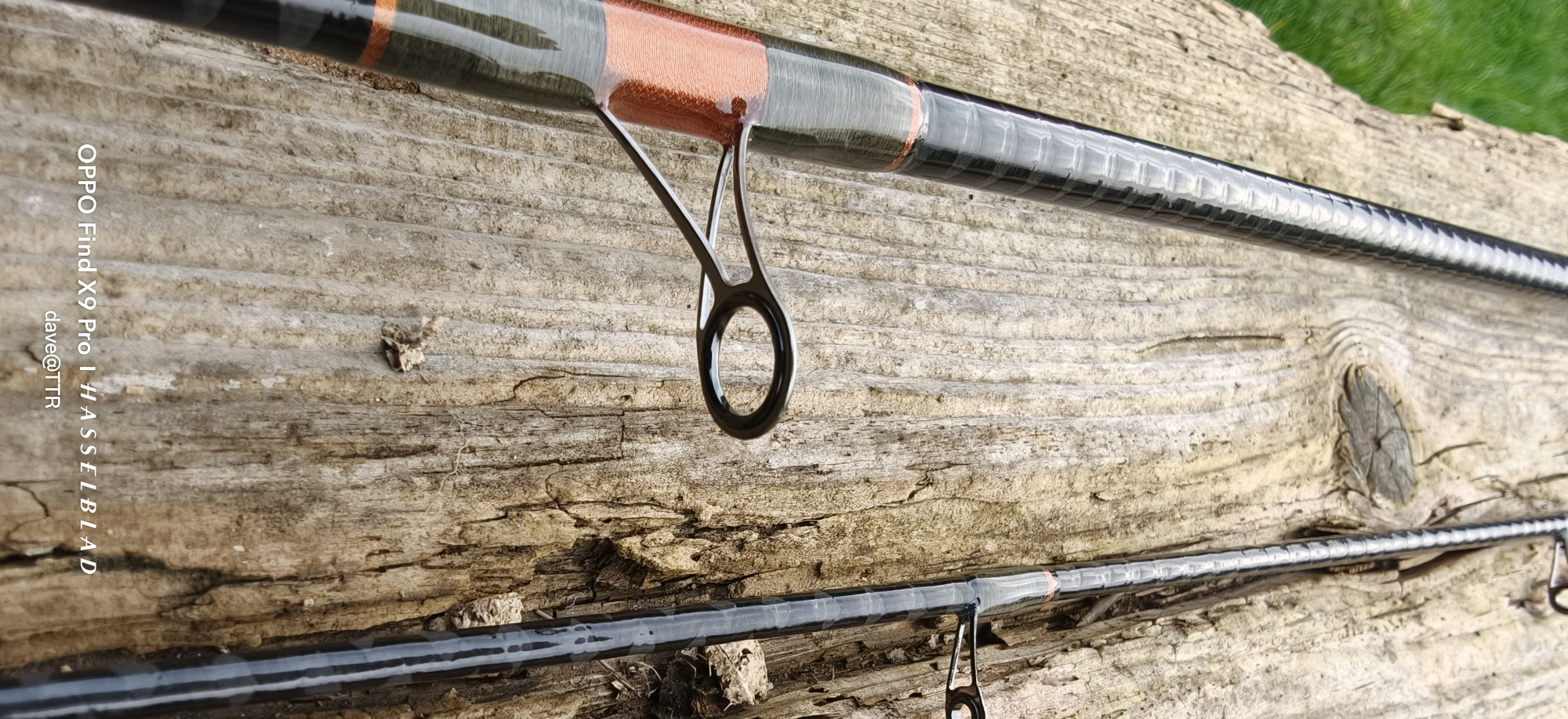 The rings/guides are 'K' series style silicon carbide guides, which are a slim, narrow version of the style favoured on modern day carp rods, lighter than carp rod rings, but more robust than 'match rings, - forward leaning, giving them great ANTI TANGLE properties. Single leg throughout the build for weight saving and keeping the true feel of the blank. Braid or mono may be used, you will never wear these rings out !