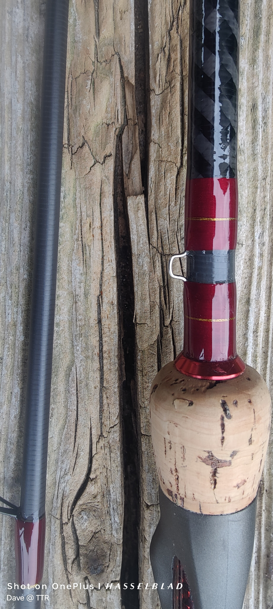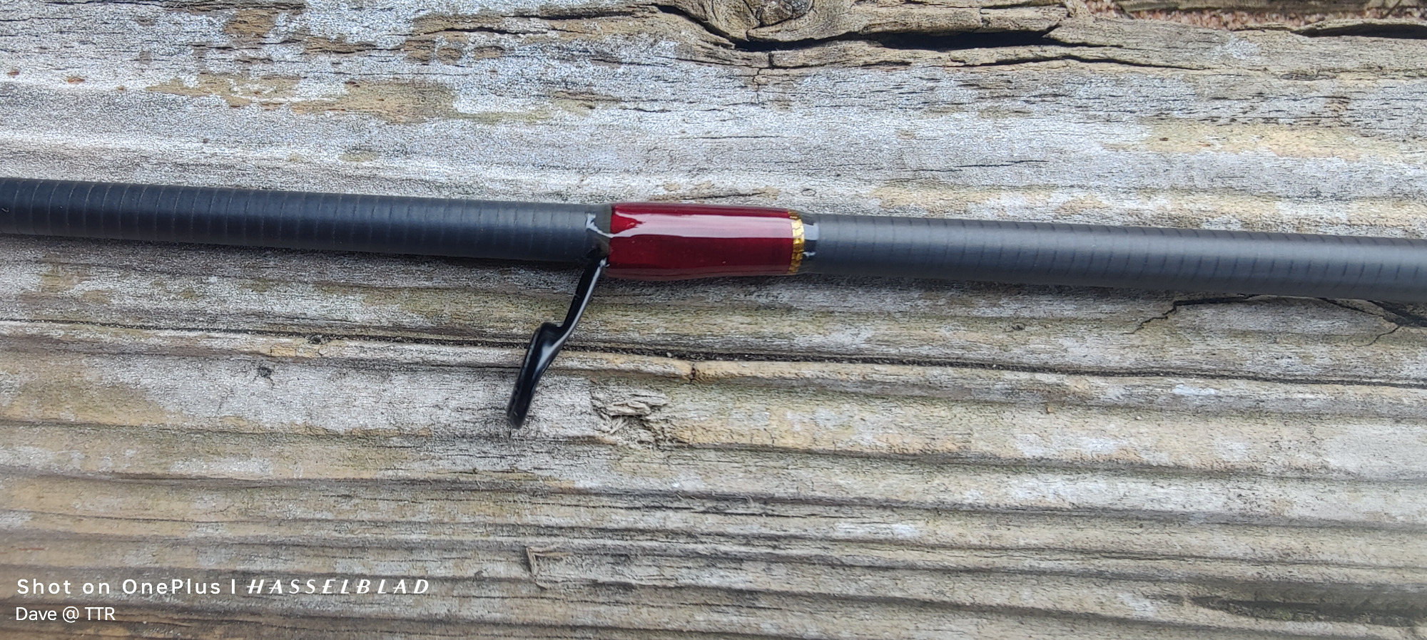 of the tip, where it reverts to plain carbon for a softer cushioned tip. The finish is immaculate, each build I do is different, the colour of this rod is exactly as you see in the images, I do not ‘do’ boring ;)